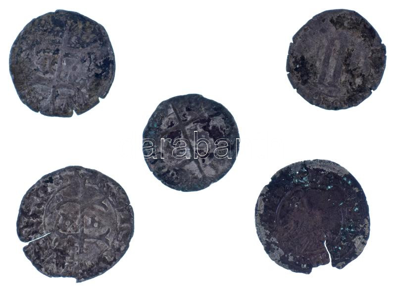 Vegyes, 5db-os középkori és/vagy koraújkori Ag/billon érmetétel T:VF-VG