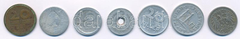 Vegyes 7db-os érme tétel, közte: elfordult veret, esztergált, nagyobb lyukasztás stb. 2f-50f (6xklf) + 10h T:vegyes