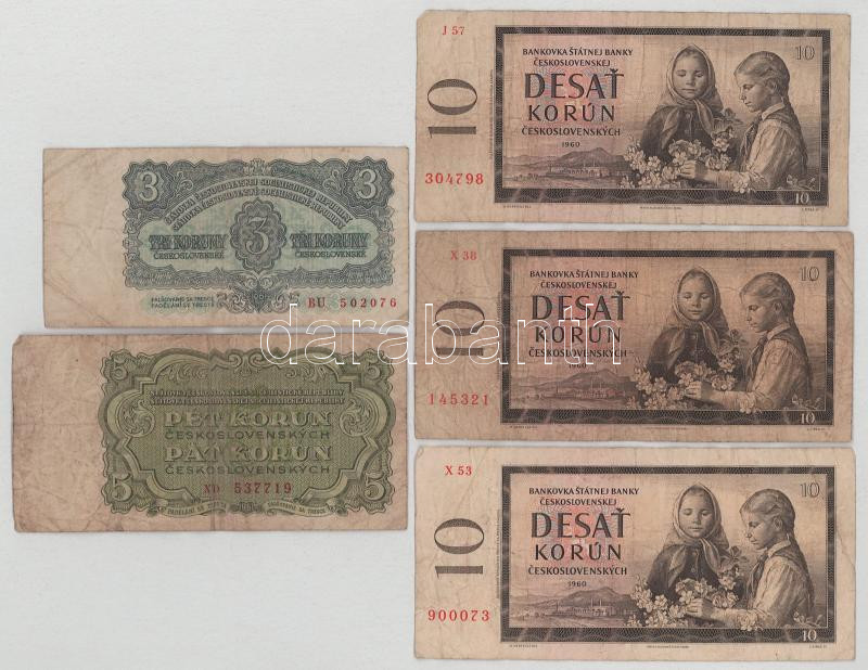 Czechoslovakia 1960. 10 Korun (3x) "J", "X" + 1961. 3 Korun + 5 Korun C:F,VG