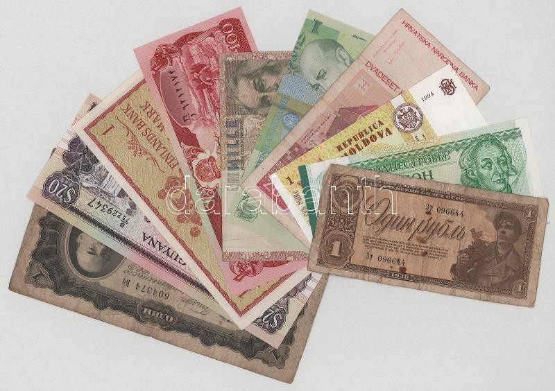 Vegyes 10db-os bankjegytétel, benne: Afganisztán, Guyana, Románia, Olaszország, Finnország, Moldova, Horvátország, Transznisztria, Szovjetunió T:vegyes