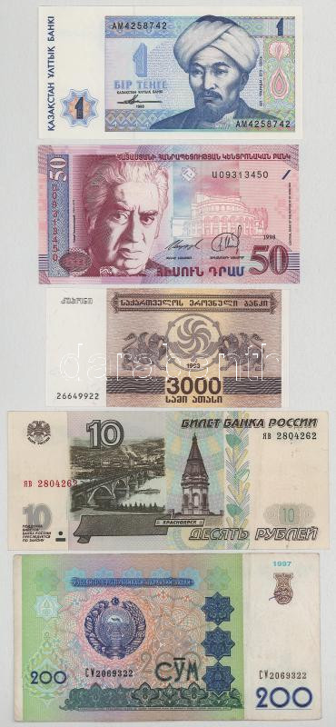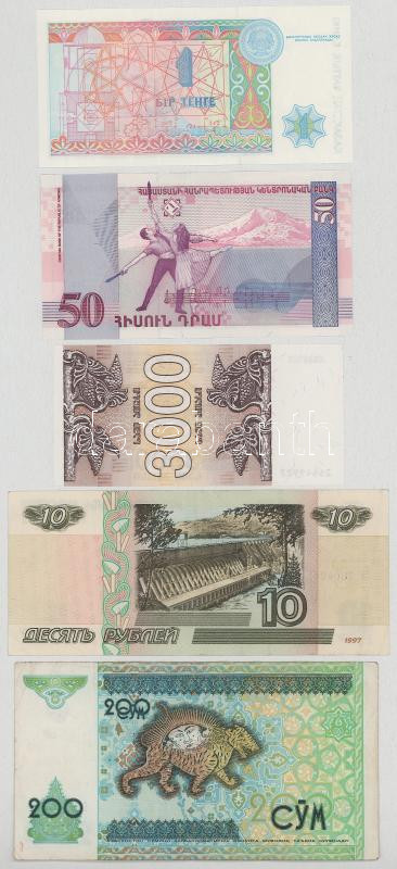 Vegyes, 5db-os külföldi bankjegytétel, közte: Üzbegisztán, Oroszország, Kazahsztán, Örményország, Grúzia T:UNC-F