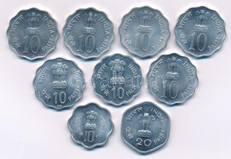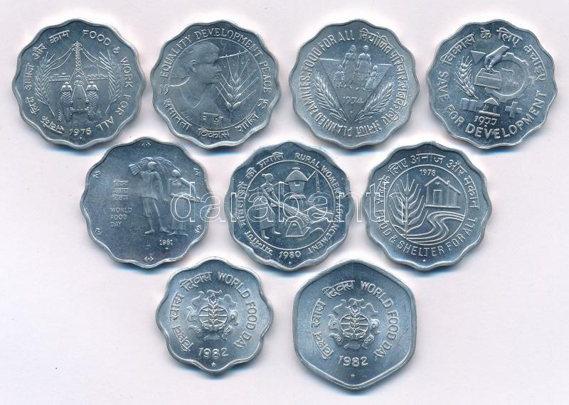 India 1974-1982. 10 Paise Al (9xdiff) FAO thematic issues C:UNC,AU