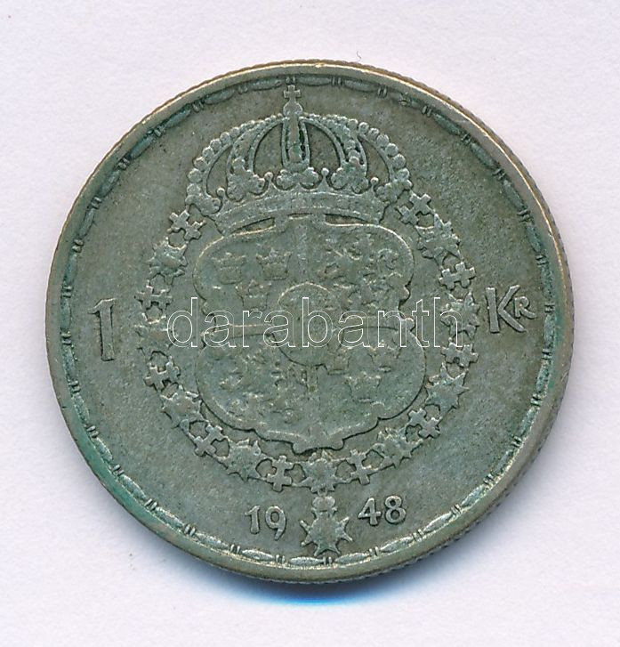 Sweden 1948TS 1 Krona billon "Gustaf V" C:VF, patina