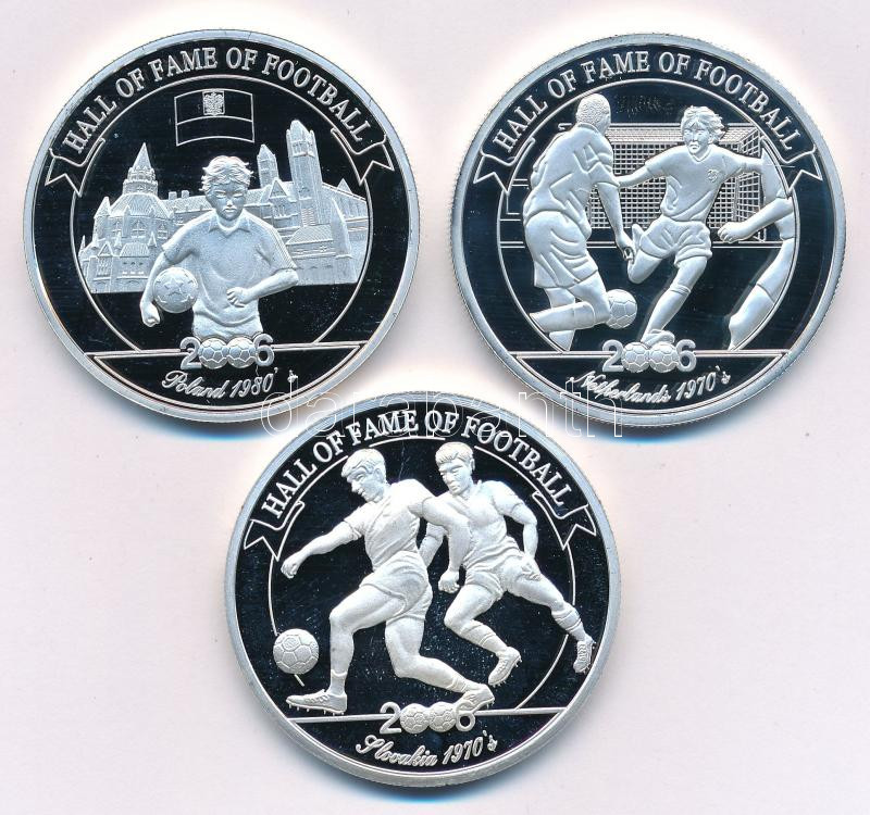 Uganda 2006. 2000Sh Cu-Ni "A labdarúgás halhatatlanjainak csarnoka" három darab érméje: Szlovákia 1970, Hollandia 1970, Lengyelország 1980. Mind kapszulában, MÉF tanúsítvánnyal T:PP fo.