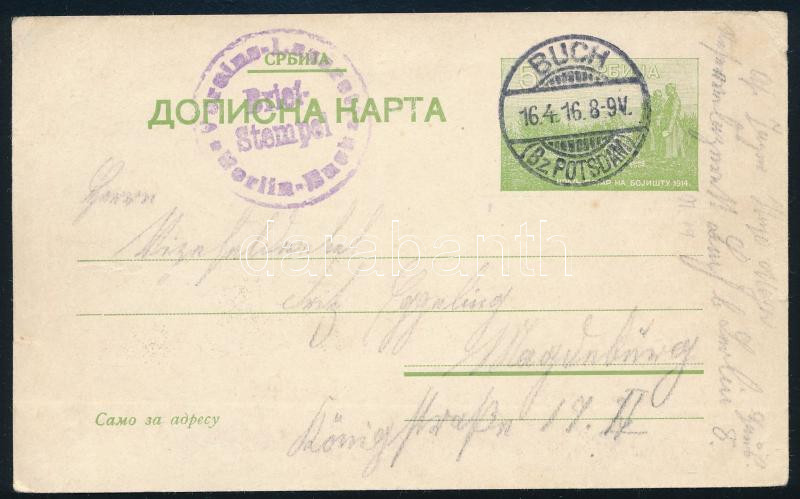 1916 Díjjegyes levelezőlap "BUCH" - Berlin, vasúti bélyegzéssel