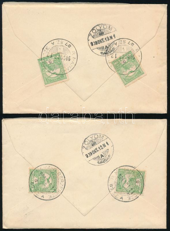1909 2 db levél "P. NÁNA-G.BERZENCZE / 87 A" mozgóposta bélyegzéssel