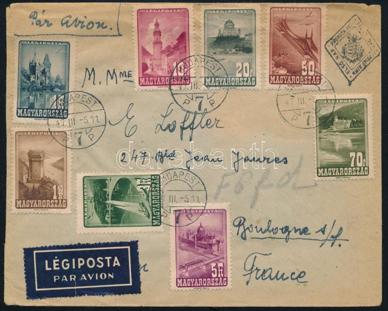1947 Repülő (IV.) sor légiposta FDC-n Franciaországba küldve (45.000)