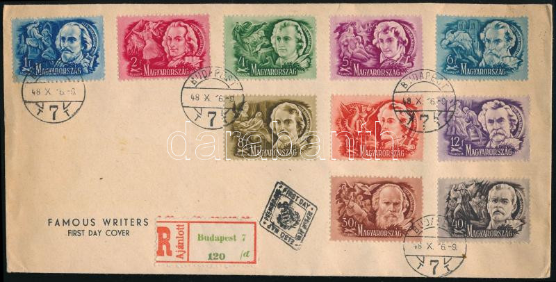1948 Költők - írók sor FDC-n Svájcba küldve