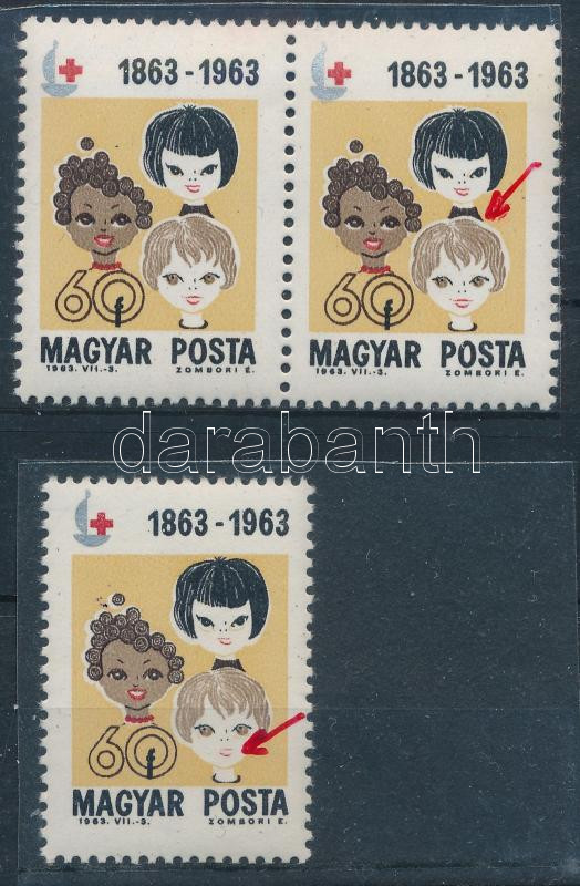 1963 Vöröskereszt V. 60f színhiánnyal + 60f pár színeltolódással
