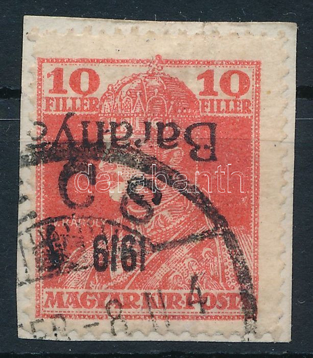 Baranya I. 1919 Károly 10f fordított felülnyomással, Bodor vizsgálójellel