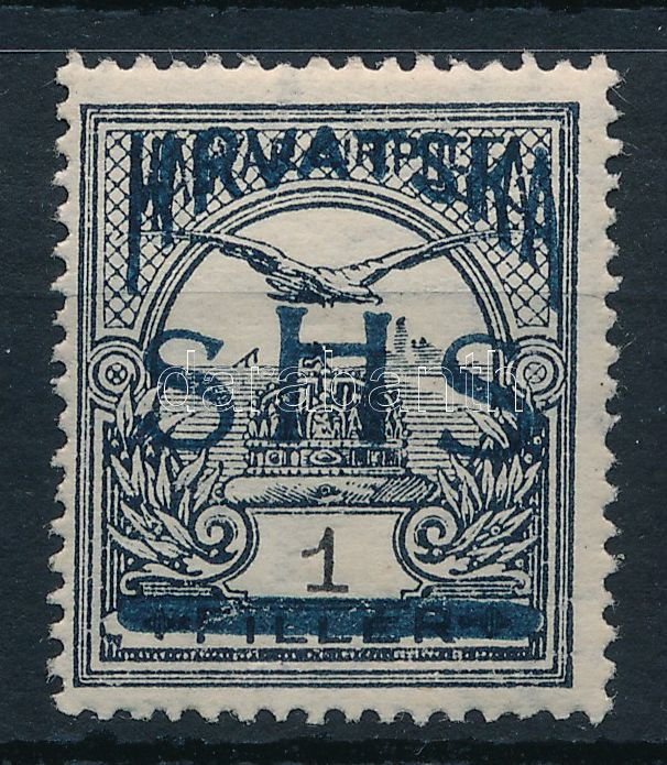 SHS 1918 Turul 1f próbanyomat Bodor vizsgálójellel