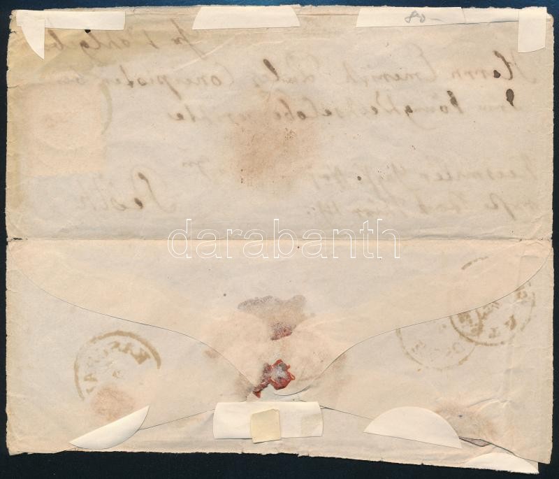 ~1864 15kr levélen / on cover "BARTFELD" - "KASCHAU" - "PESTH" kiállítási célból szétnyitva / the cover is opened for exposition purpose (foltos, gyűrött / spot, folded)