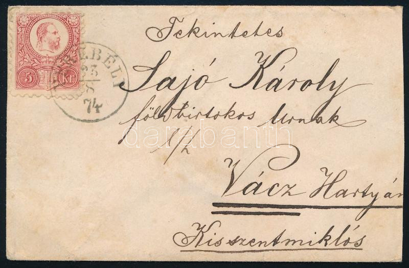 1874 Réznyomat 5kr levélen "VEREBÉLY"