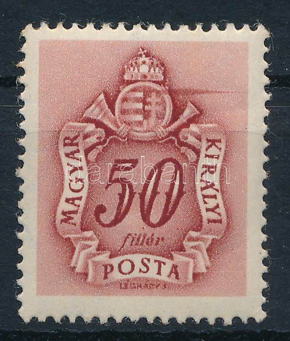 1941 Barnaportó (II.) 50f bélyeg bordó festékcsík a címer mellett