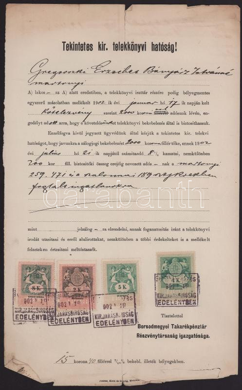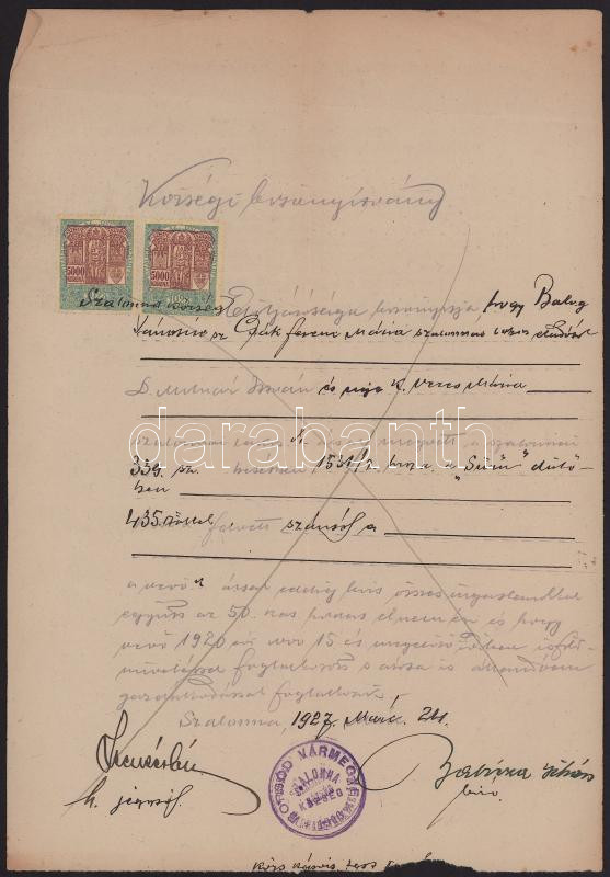 1902,1927 Két okmány, egyik nagy címletű lerovással