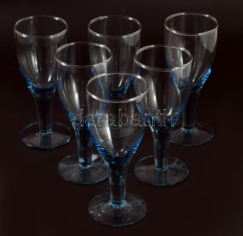 Tengerkék színű talpas pohár garnitúra, 6 darab, hibátlan, m: 18 cm