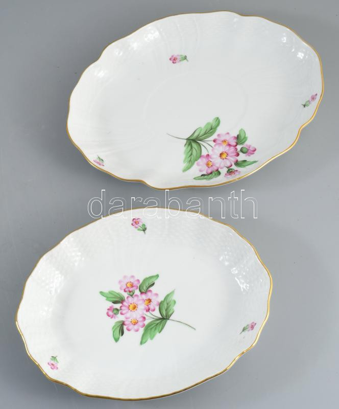 2 darab Herendi virágmintás kínáló, jelzett, 2. oszt., h: 22-26 cm