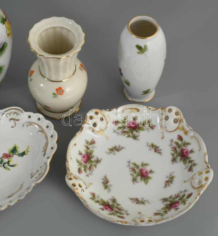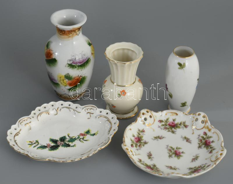 5 darab porcelán tárgy, váza, tálka, közte Rosenthal, Herendi, h: 14 cm alatt