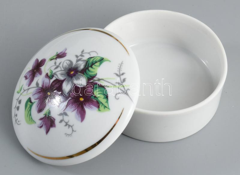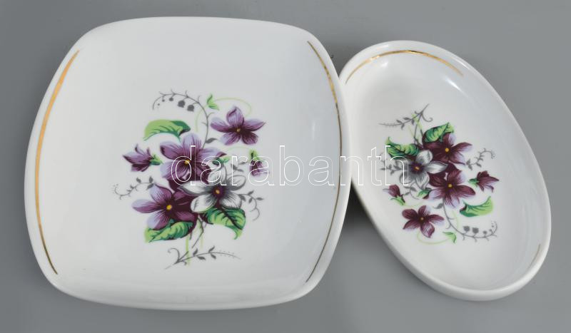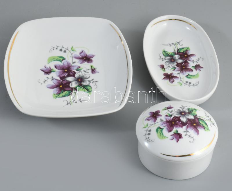 Hollóházi virágmintás 3 részes asztali szett, h: 14 cm alatt