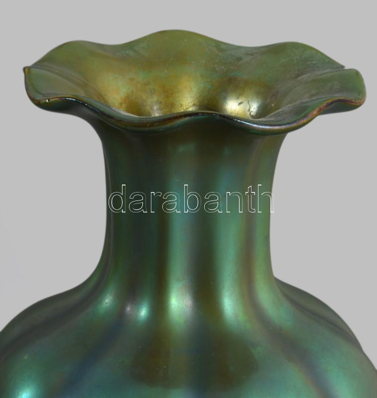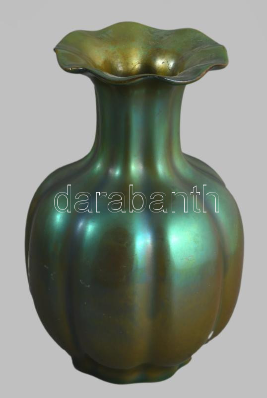 Zsolnay eozin mázas paradicsomvirág váza, jelzett, kis karcokkal, m: 15 cm