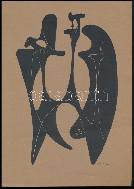 Augustin Cardenas (1927-2001): Kompozíció, 1959. Linómetszet, papír. Jelzett. Hajtásnyommal. 29,5x21 cm.