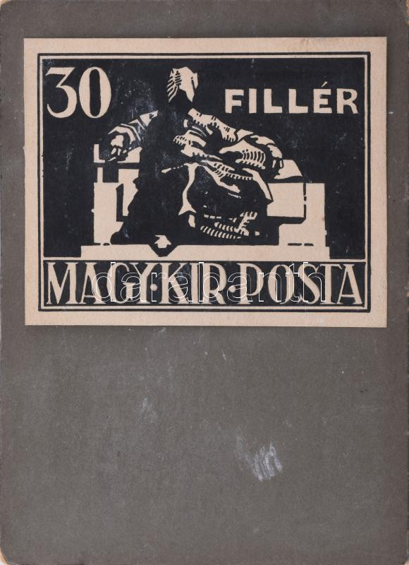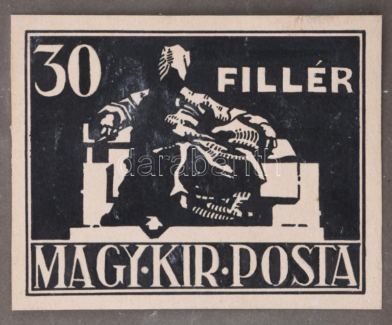 Szege Sándor (1883-1945): 30 fillér bélyeg terve, 1926 körül. Tus, papír. Jelzés nélkül. Kartonra kasírozva. 9x11 cm.