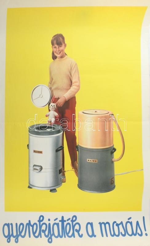 1968 Gyerekjáték a mosás, Hajdu mósógép plakát, ofszet, papír, Offset-nyomda, hajtásnyomokkal, feltekerve, 82x57 cm