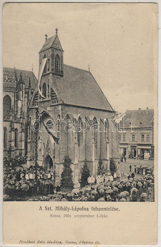 1904 A kassai Szent Mihály kápolna felszentelése https://www.darabanth.com/de/52-Fernauktion/52.0/Ansichtskarten/~237/1904-A-kassai-Szent-Mihaly-kapolna-felszentelese~II101659