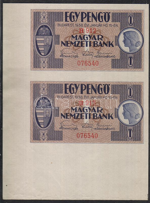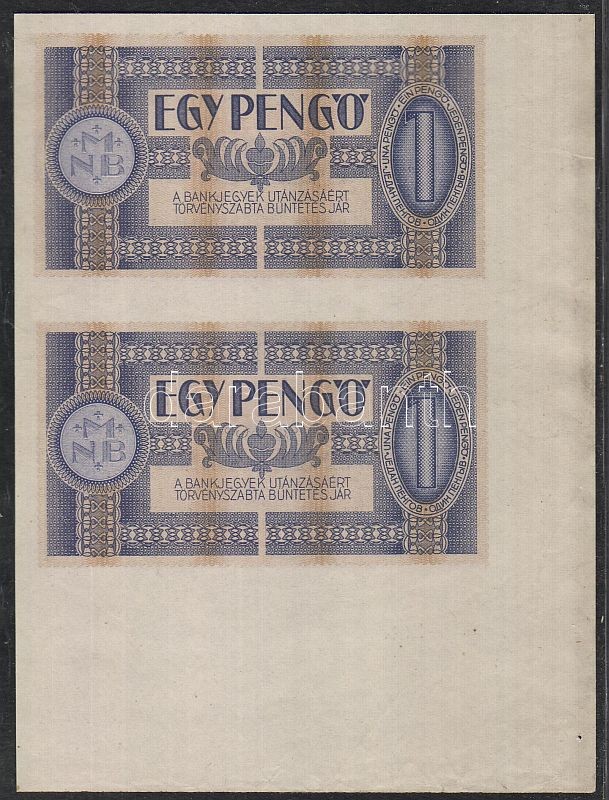 1938. 1P függőleges párban, bal alsó sarokívszél! T:I https://www.darabanth.com/de/52-Fernauktion/52.0/Numismatik/~247/1938-1P-fuggoleges-parban-bal-also-sarokivszel-TI~II102557