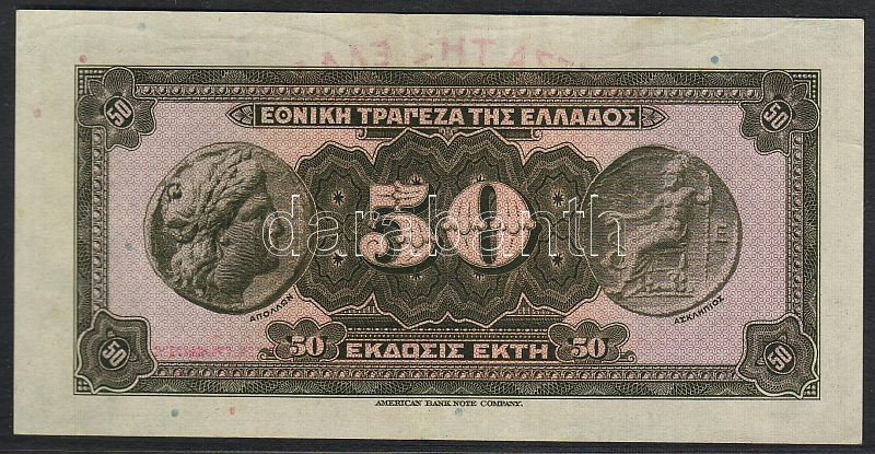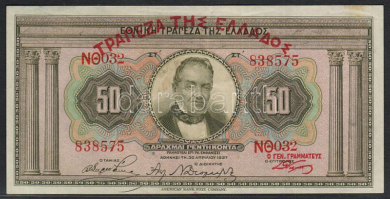 Beschreibung: Görögország 1927.április 30. 50Dr T:II+ Csak egyszer hajtva!