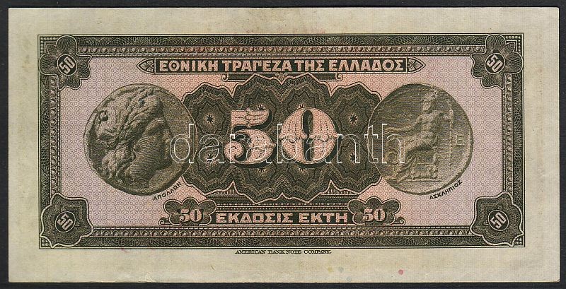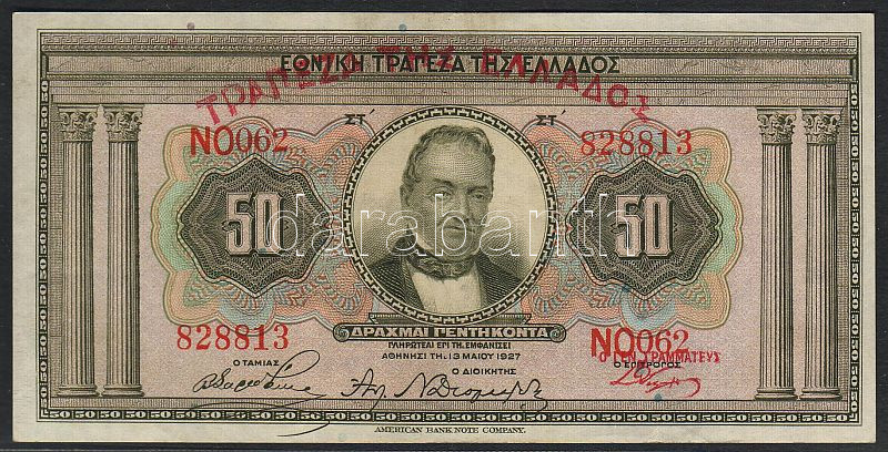 Beschreibung: Görögország 1927.május 13. 50Dr T:II+ Csak egyszer hajtva!