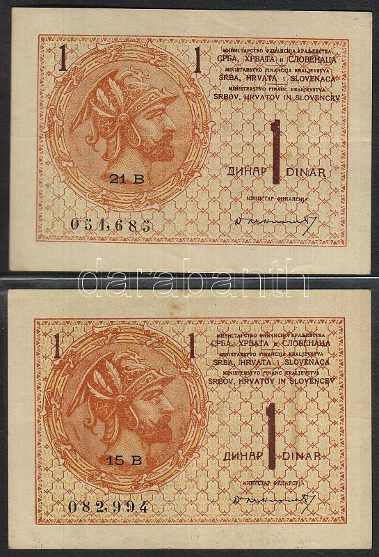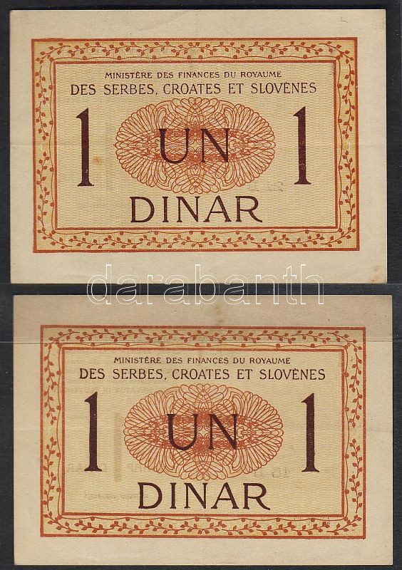 Jugoszlávia 1919. 1D (2x) T:II https://www.darabanth.com/de/52-Fernauktion/52.0/Numismatik/~247/Jugoszlavia-1919-1D-2x-TII~II101586