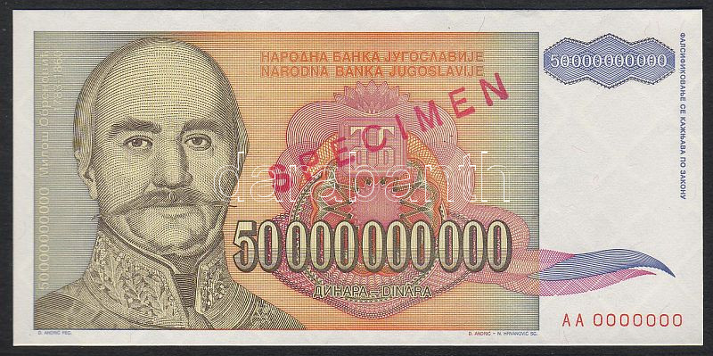 Jugoszlávia 1993. 50.000.000.000D "Specimen 0000" T:I https://www.darabanth.com/de/52-Fernauktion/52.0/Numismatik/~247/Jugoszlavia-1993-50000000000D-Specimen-0000-TI~II102697