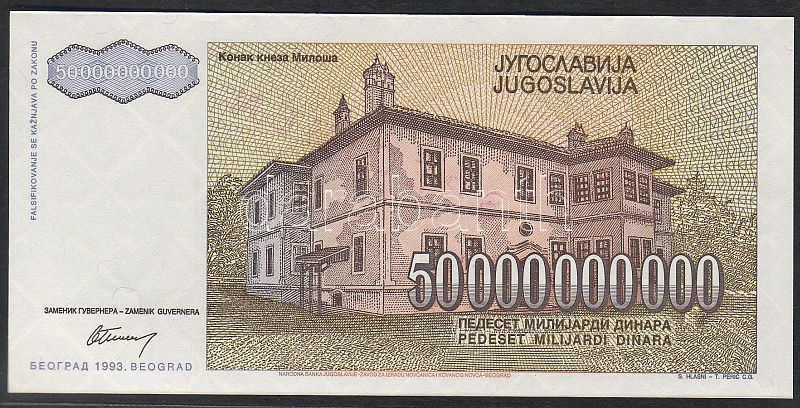 Beschreibung: Jugoszlávia 1993. 50.000.000.000D "Specimen 0000" T:I