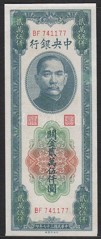 Kína/Central Bank 1940-es évek 25.000CGU T:I https://www.darabanth.com/de/52-Fernauktion/52.0/Numismatik/~247/KinaCentral-Bank-1940-es-evek-25000CGU-TI~II102636