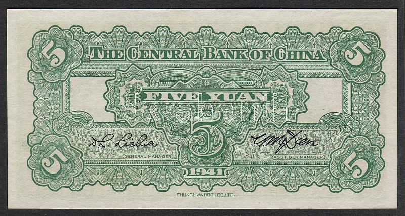 Beschreibung: Kína/Central Bank 1941. 5Y zöld T:I
