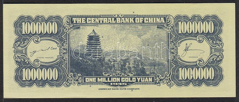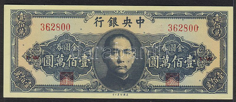 Kína/Central Bank 1945. 1000.000Y kék T:I https://www.darabanth.com/de/52-Fernauktion/52.0/Numismatik/~247/KinaCentral-Bank-1945-1000000Y-kek-TI~II102612