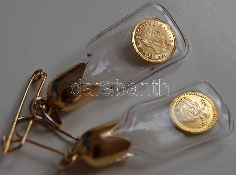 Beschreibung: USA + Mexikó minipénzutánzatok feltehetőleg 0,333 Au, mint fülbevaló (fél pár) és kitűző T:1