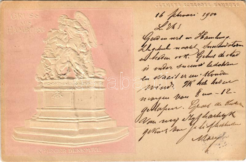 1900 Hamburg, Krieger denkmal / war monument. Glemens Schröder Emb.