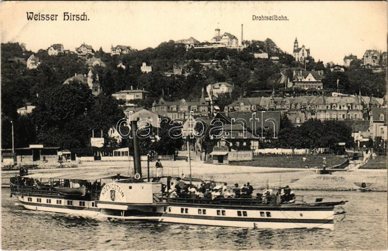 Dresden, Weisser Hirsch; Drahtseilbahn. Verlag Rich. Otto / cable car, "KOENIGSTEIN" steamship (EK)