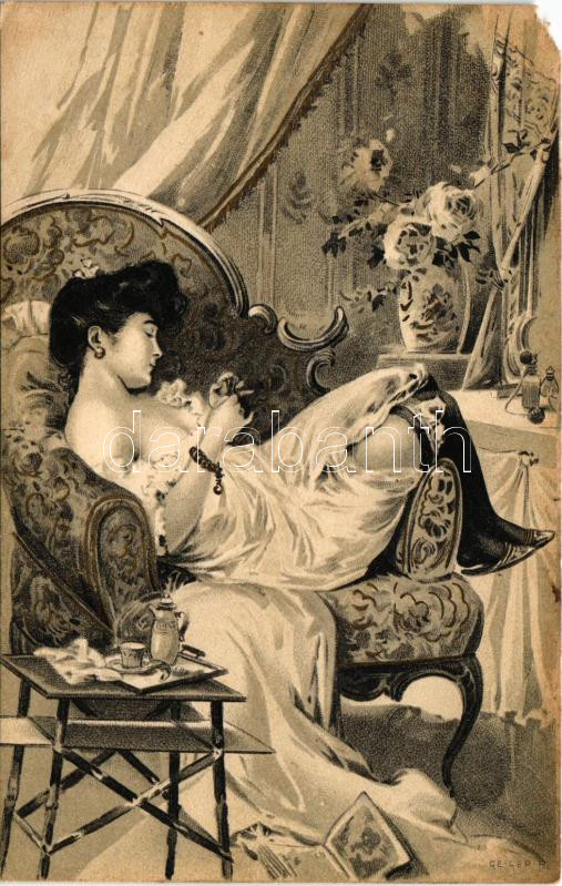 Slightly erotic lady art postcard (EM)
