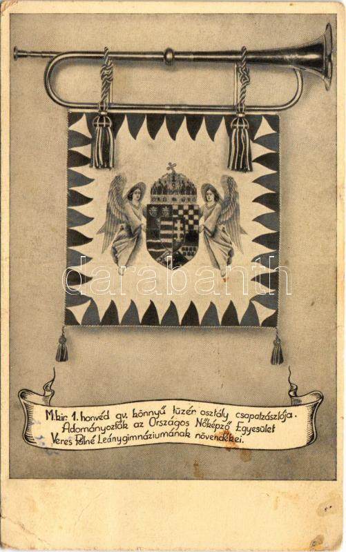 M. kir. 1. honvéd gv. könnyű tüzér osztály csapatzászlója, adományozták az Országos Nőképző Egyesület Veres Pálné Leánygimnáziumának növendékei / 1st Light Artillery Division, Royal Hungarian Army, flag (fa)