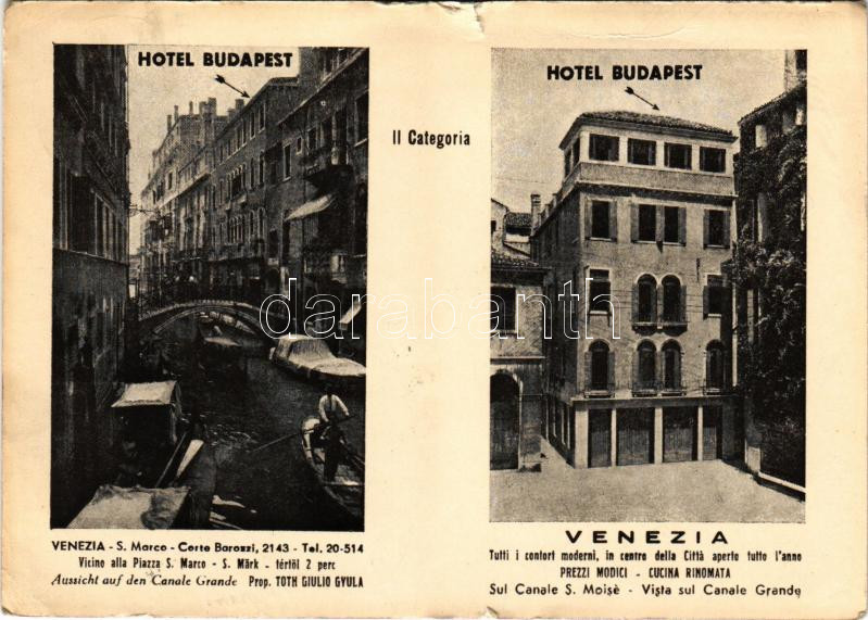 1962 Budapest szálloda Velencében. Hungarika / Hotel Budapest in Venezia (Venice). Hungarica (szakadás / tear)