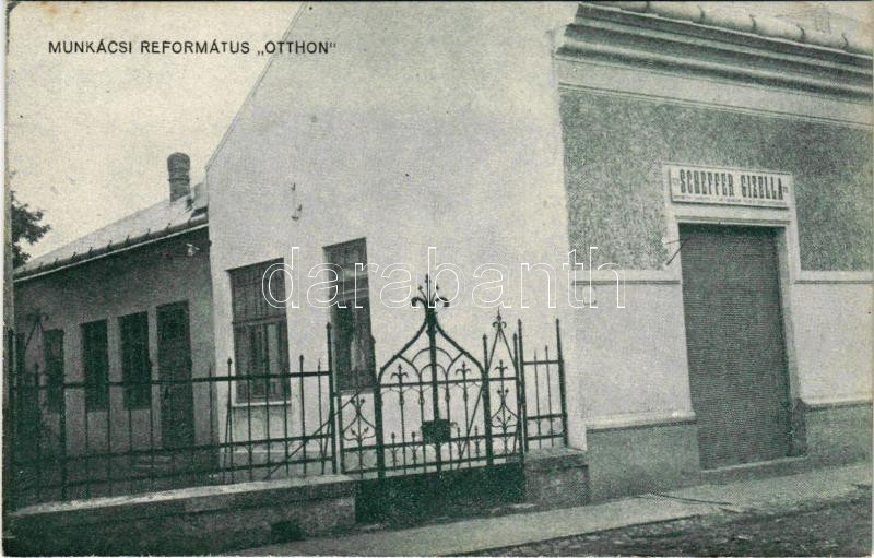 Munkács, Mukacheve, Mukachevo, Mukacevo; Református Otthon, Scheffer Gizella üzlete. Kálvin nyomda / Calvinist home, shop