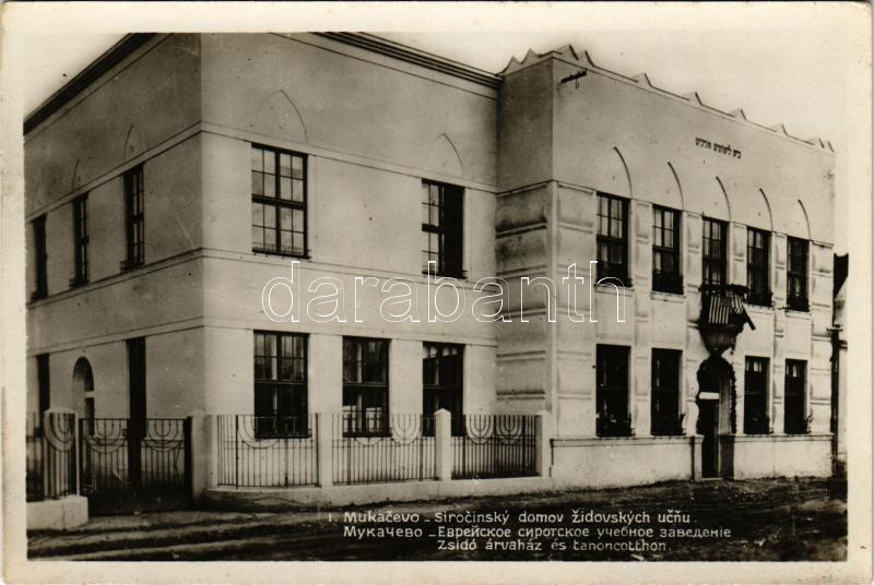 Munkács, Mukacheve, Mukachevo, Mukacevo; zsidó árvaház és tanoncotthon. Heinrich Schönfeld kiadása. Judaika / Sirocinsky domov zidovskych ucnu / Jewish orphanage and apprentice boarding school. Judaica (fl)
