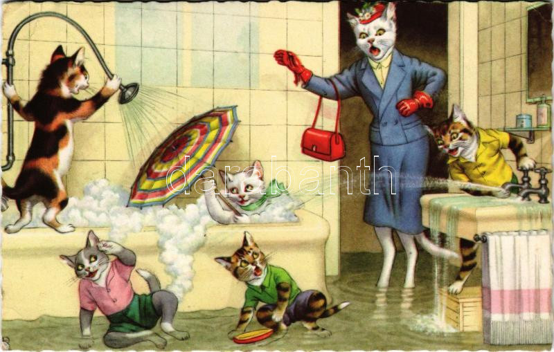 1958 Bathing cats. Alfred Mainzer - modern postcard (EB)