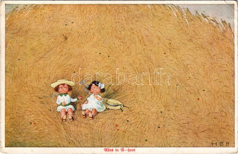 1922 Alles in ä-hren / Children art postcard, smoking. Wohlgemuth & Lissner "Sommerurlaub auf dem Lande" No. 1009. HSB s: Herbert Schultz (EK)