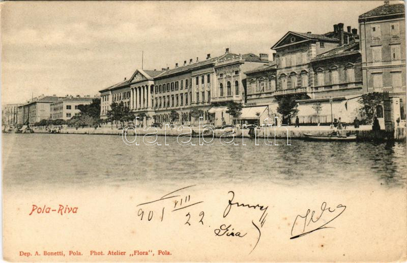 1901 Pola, Pula; Riva, Palazzo Stabale / Stabsgebäude / Osztrák-Magyar Haditengerészet palotája / Austro-Hungarian Navy, K.u.K. Kriegsmarine palace. Dep. A. Bonetti. Phot. Atelier "Flora" (fl)