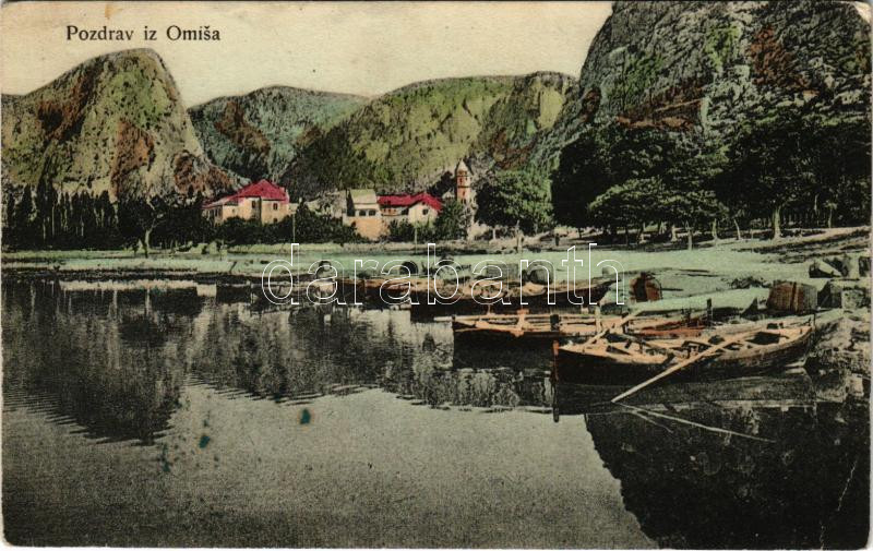 1916 Omis, Omisa; general view, boats. Ivan Franceschi Ivanov + feldpost