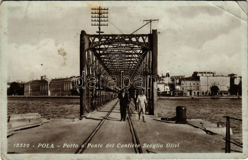1933 Pola, Pula; Porto e Ponte del Cantiere Scoglio Olivi (Uljanik) / hajógyári kikötő és híd / port and bridge of the Scoglio Olivi Shipyard (EB)